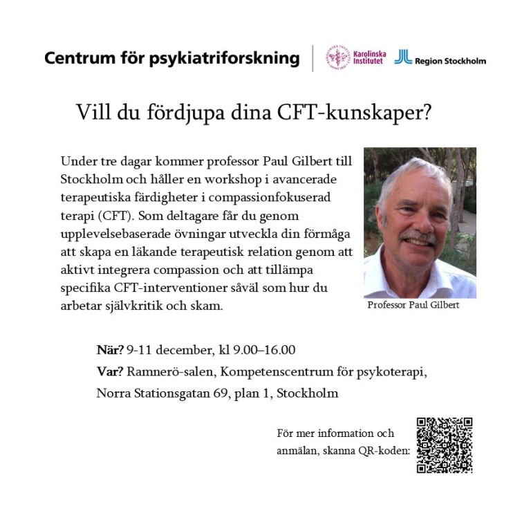 Save the date: 10/12 Kommer Professor Paul Gilbert till Stockholm.
